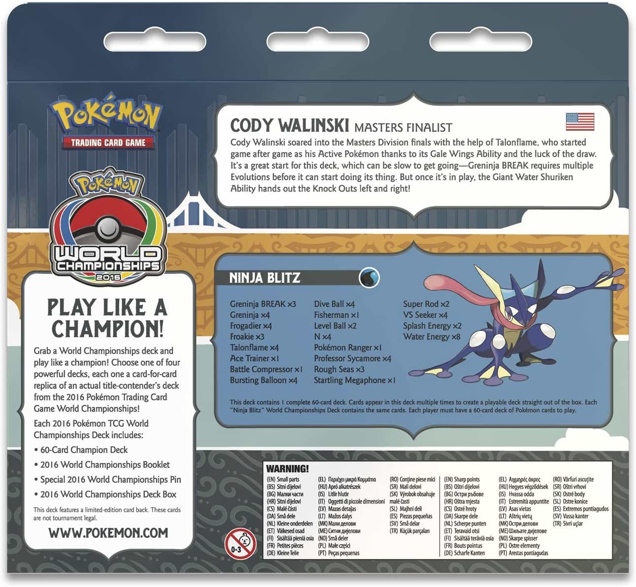 Grab a World Championships deck and play like a champion! Choose one of four powerful decks, each one a card-for-card replica of an actual title-contender's deck from the 2016 Pokémon Trading Card Game World Championships!