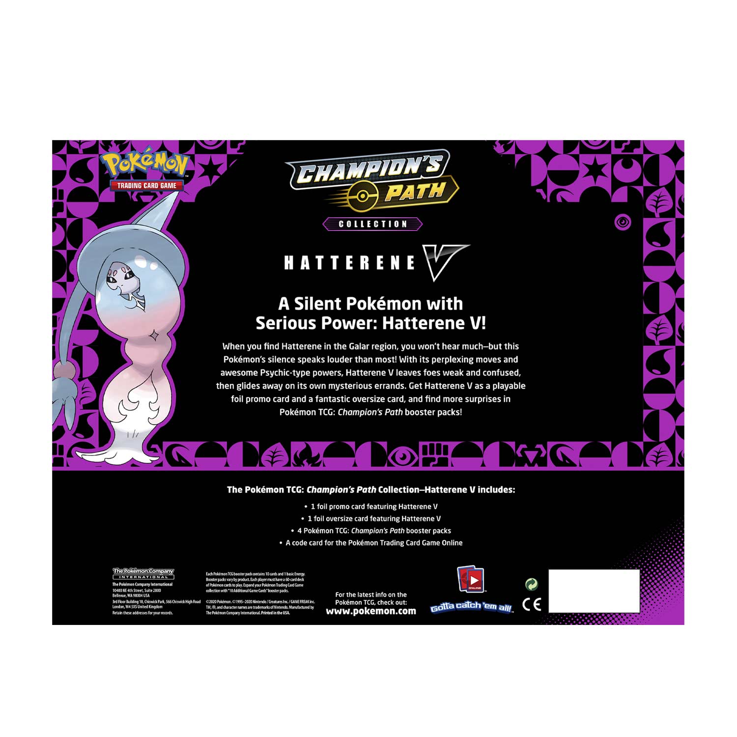 The Pokémon TCG: Champion's Path Collection (Hatterene V) includes: